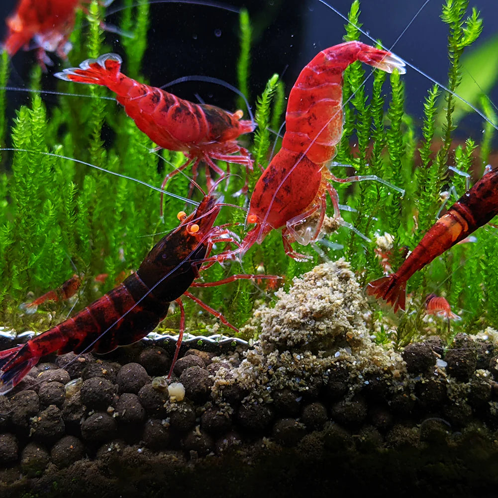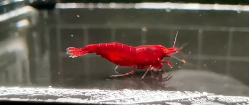 Red Devil shrimp are a hybrid caridina shrimp. They're characterized by their bright orange eyes and deep red shell.